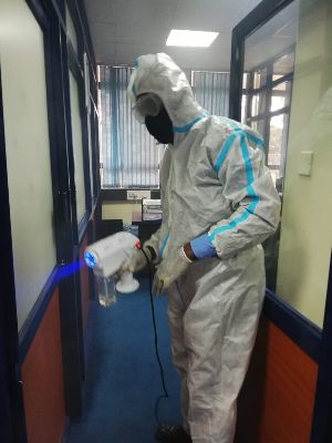 With our sister company producing quality sanitizer certified by KBS, our stewards have been trained to provide latest sanitization services using fogging machines which cover wide range and penetrate in all areas that need to be sanitized for covid19.