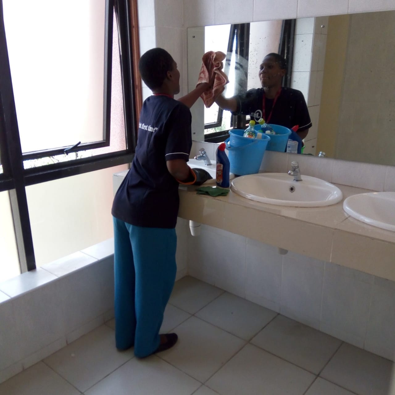 We dust and polish office furniture, equipment, partition tops and maintenance of washrooms, floor surfaces among others along that line. We must get it Right First Time, all the time!